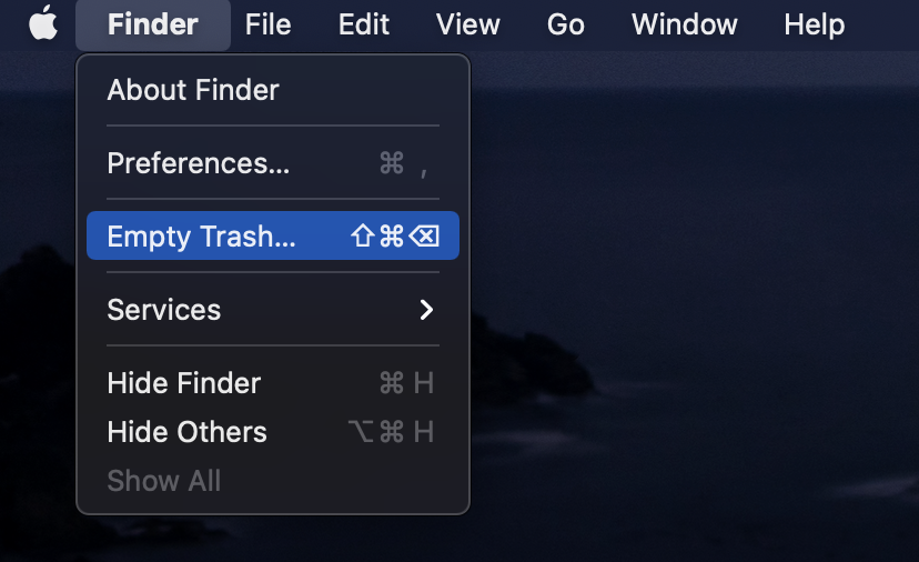 Once the app has been moved to the trash, to completely delete the app, choose Finder > Empty Trash. You can also reboot your system at this point to clear out any potential temporary files.