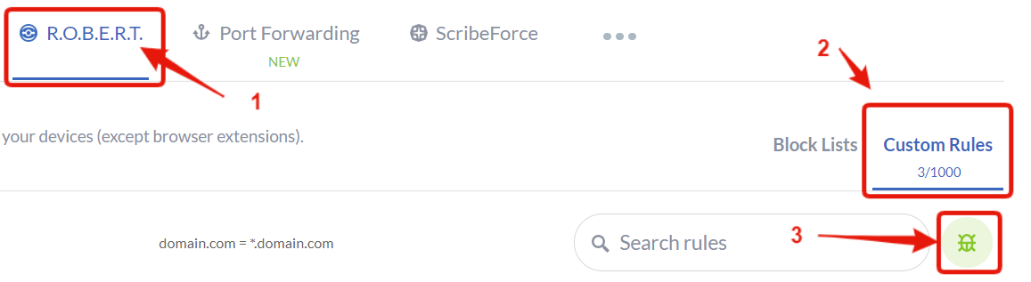 For these cases, we made a convenient debugging feature that when enabled, will display to you all the domain requests that R.O.B.E.R.T. saw during the duration of the debugging. These domains are not stored anywhere besides your local webpage so we aren't logging anything permanently, only showing the domains on your screen which R.O.B.E.R.T. handled.